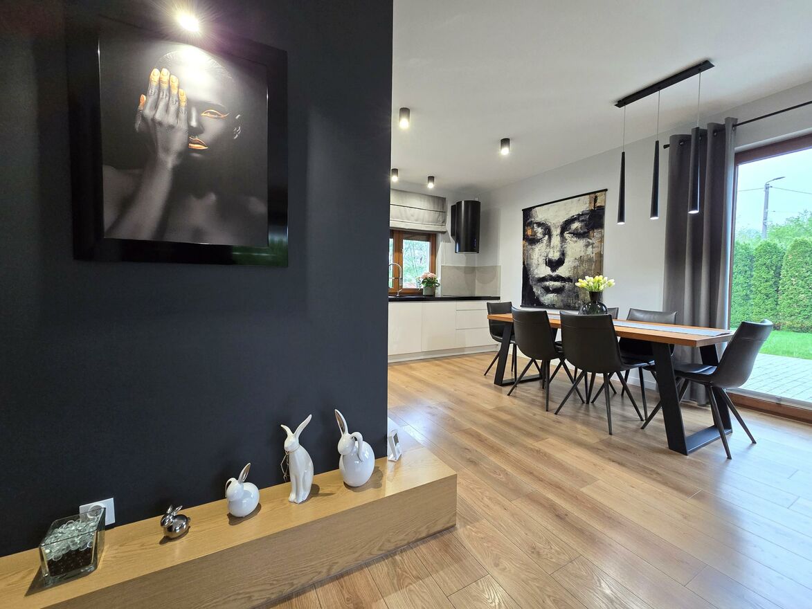Wnętrze domu zostało zaprojektowane z dbałością o każdy, nawet najmniejszy detal. Dom wykończony materiałami najwyższej jakości - gotowy do zamieszkania!